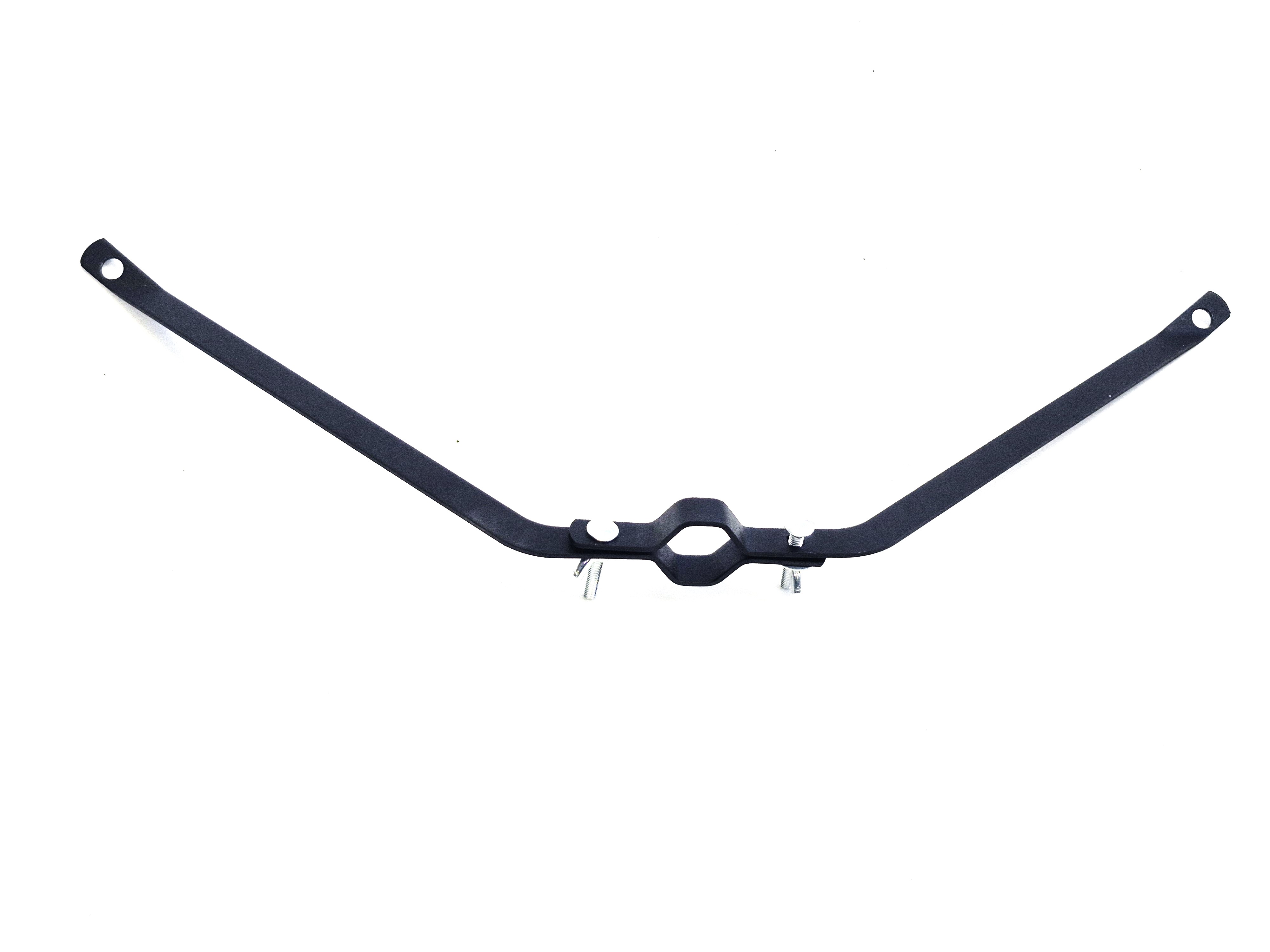 Besen-Stabilisator 2-teilig aus pulverbeschitetem Stahl, schwarz mit 4 Montageschrauben.